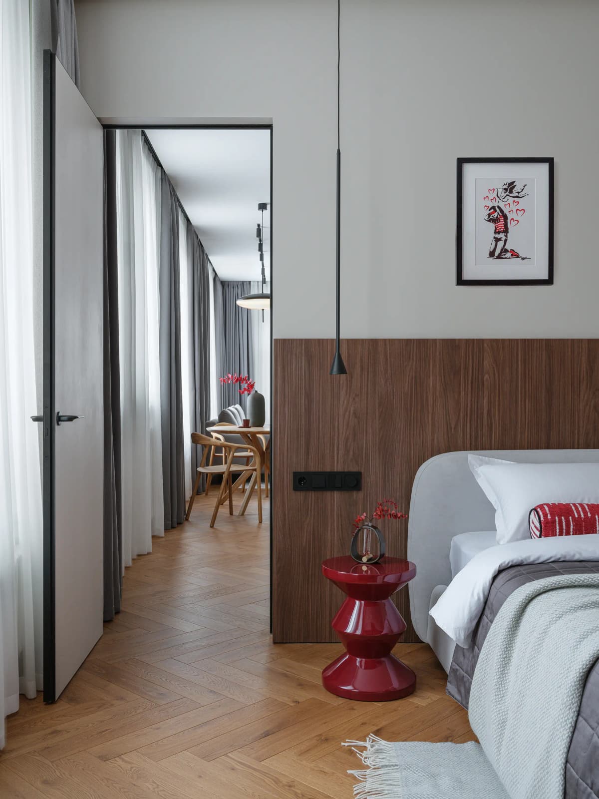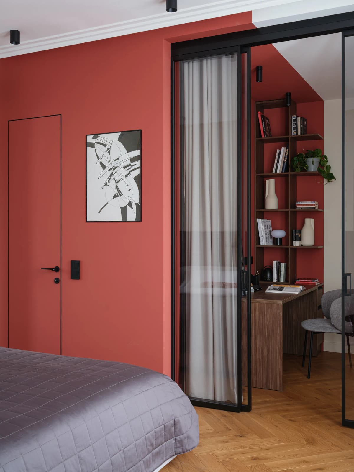 - Rich red in the bedroom.
